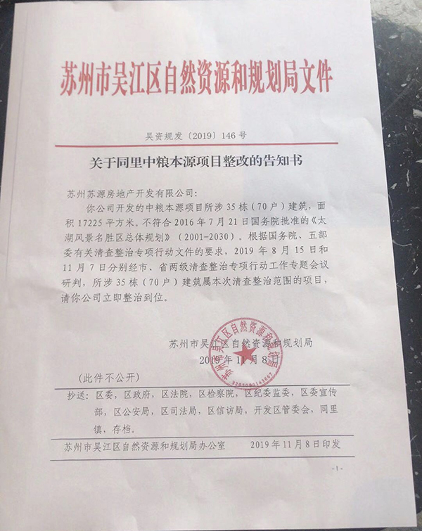 吳江自然資源與規(guī)劃局給開發(fā)商的整改告知書