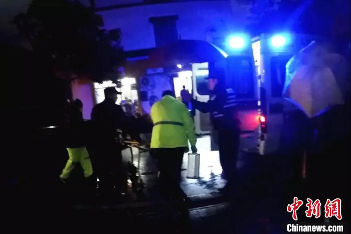 民警撐傘送老人上救護車 南太湖公安提供 攝