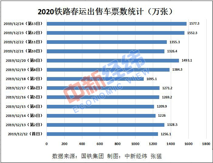 鐵路春運(yùn)售票第13日(12月24日),全國鐵路共售出車票1577.3萬張,連續(xù)兩天出售車票數(shù)超1500萬張。中新經(jīng)緯客戶端梳理發(fā)現(xiàn),截至12月24日,全國鐵路共出售車票1.73億張。