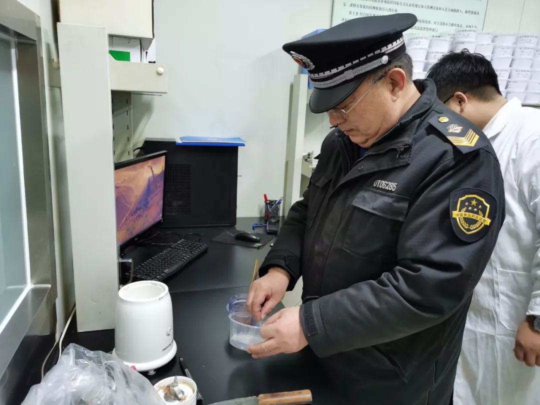 測溫合格后,市場監管人員聯合市場主辦方開始核驗供貨商提供的《動物檢驗合格證明》《肉品品質檢驗證明》《非疫區證明》,目測胴體豬肉上的“檢疫驗訖印章”和“肉品品質檢驗驗訖印章”,隨機切割豬肉樣本進行快速復檢。在新發地肉類交易大廳檢測室,記者看到工作人員正在對豬肉肉質的含水量進行檢測,同時檢測豬肉是否含有瘦肉精。