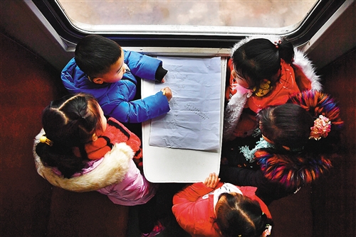 7269次列車上,幾位小學(xué)生在車廂里做作業(yè)。綠皮“慢火車”穿行在武陵山深處,為沿線百姓提供出行服務(wù)的同時,也承擔著學(xué)生上下學(xué)“校車”的責任。