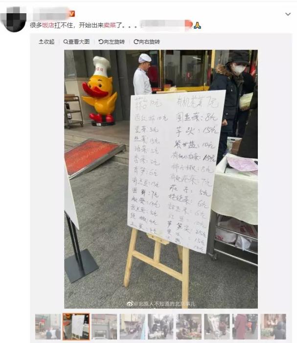 不少飯店開始賣蔬菜。微博截圖