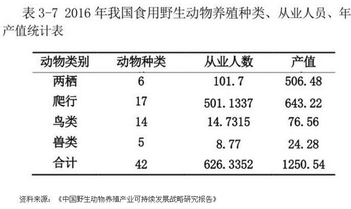 《中國野生動(dòng)物養(yǎng)殖產(chǎn)業(yè)可持續(xù)發(fā)展戰(zhàn)略研究報(bào)告》(2017年)介紹,目前,我國各地人工飼養(yǎng)繁殖的野生動(dòng)物種類多達(dá)幾百種,龜鱉類、毛皮動(dòng)物、蛇類、鹿類、鱷魚類、蛙類等養(yǎng)殖業(yè)已形成集約化生產(chǎn)。