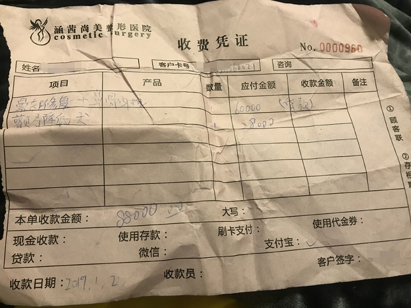整容消費收據(jù) 受訪者供圖