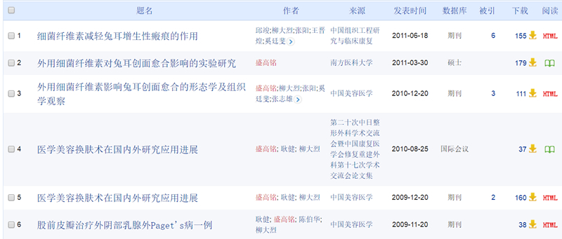 中新經(jīng)緯記者在盛某的個人簡介中看到,其自稱畢業(yè)于南方醫(yī)科大學(xué)(原中國人民解放軍第一軍事醫(yī)科大學(xué))整形美容外科專業(yè),醫(yī)學(xué)博士(PHD),臨床醫(yī)學(xué)美容系科班出身,發(fā)表中外論文十余篇。然而,在中國知網(wǎng)查詢后只看到6篇與盛某有關(guān)的論文,時間跨度在2009-2011年三年間,且只標(biāo)注是碩士論文,并未見到博士論文。同時,中新經(jīng)緯記者在南方醫(yī)科大學(xué)博士招生網(wǎng)站看到,在近年的博士招生目錄中,也并未有“美容系”或“整形美容專業(yè)”,僅有的類似專業(yè)也只是外科學(xué)專業(yè)的整形方向。