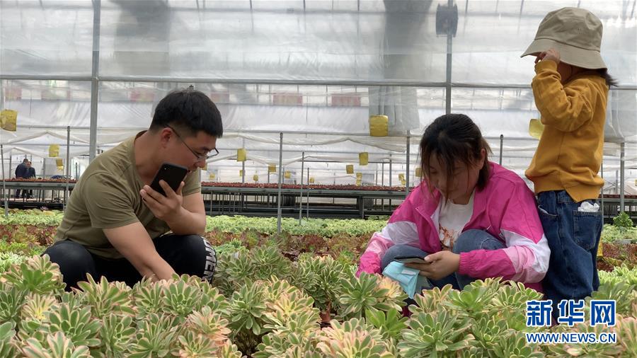 4月18日,“新農(nóng)人”韓曉文在大棚里布置多肉植物。新華社記者楊紹功攝