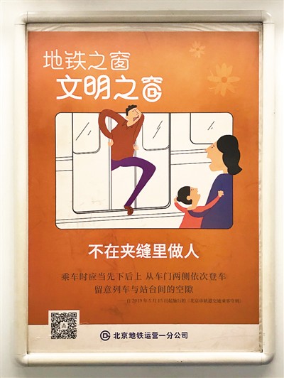 北京地鐵車廂內的文明宣傳廣告。本報記者 王晶玥攝