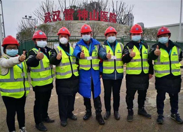 中建鐵投華東公司援建雷神山醫院的7名員工,魏龍(右三),戈光良(右一),周聯(中)