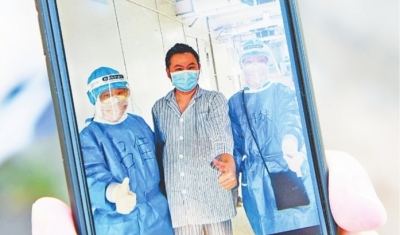 2月20日,萬春暉兩次核酸檢測(cè)結(jié)果為陰性,達(dá)到出院標(biāo)準(zhǔn)。醫(yī)護(hù)人員送萬春暉走出病區(qū)。間隔10米遠(yuǎn),萬春暉和他們隔空擁抱,一句“珍重”頓時(shí)濕了眼眶。萬春暉說:“沒有經(jīng)歷過此情此景,很難體會(huì)醫(yī)患之間這種感情,我們是生死之交。”