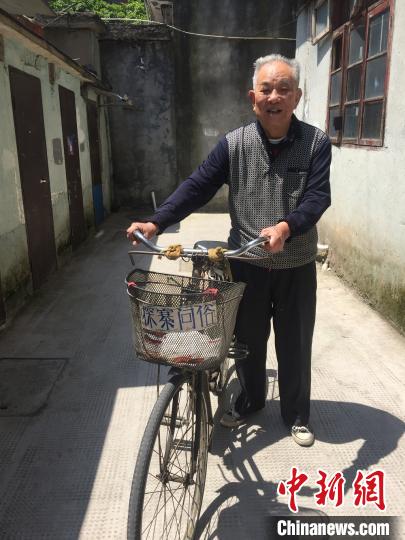 八旬老人傅才法和他的自行車。 張學(xué)敏 攝