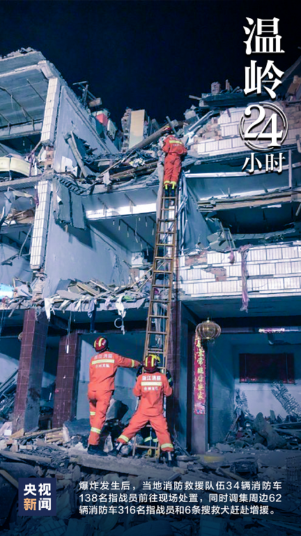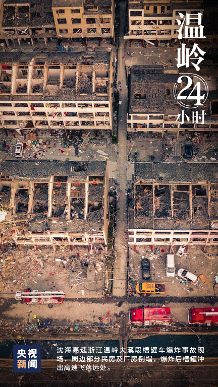 13日,沈海高速浙江溫嶺大溪段一輛液化氣槽罐車發生爆炸致19人遇難、172人住院治療爆炸造成周邊部分民房及廠房倒塌消防、武警戰士等趕赴現場救援,徹夜奮戰 監制丨李浙 主編丨蔣安琪 王…