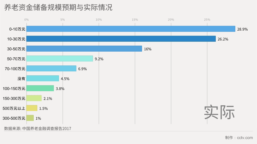 國(guó)人總喜歡未雨綢繆,對(duì)于退休后的生活,人們既有期待,也有擔(dān)憂,每個(gè)人都希望自己能夠攢足養(yǎng)老費(fèi)用。理想數(shù)字的平均值是937632元,但現(xiàn)實(shí)很骨感,實(shí)際的狀況是455548元,剛好覆蓋了以人均預(yù)期壽命入住養(yǎng)老院的花銷(xiāo)。