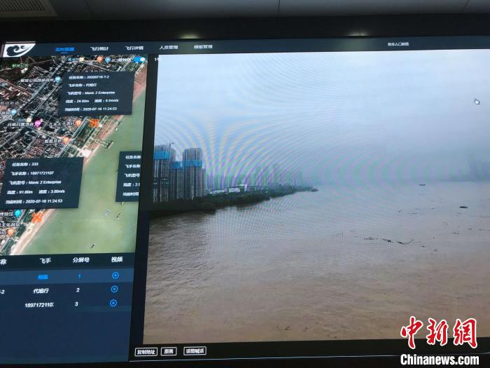 7月16日上午,武漢市水務局水旱災害防御處副處長楊磊坐在指揮室里,調度3架無人機執行巡堤任務。楊磊介紹,今年入汛以來,武漢市水務部門組建了一支無人機大隊,參與到巡堤查險、人員搜救等工作中,推出無人機實時直播平臺,通過5G信號實時將現場視頻傳回指揮中心,截至目前已運用1000余臺次。