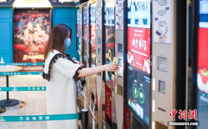 資料圖:7月24日,觀眾在北京萬達(dá)影城CBD店內(nèi)自助掃碼取票。中新社記者 賈天勇 攝