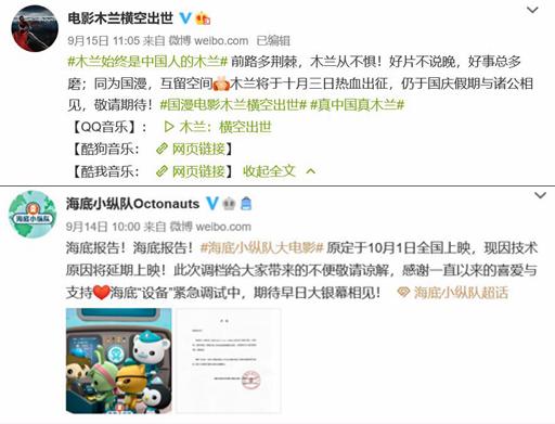 電影《木蘭:橫空出世》《海底小縱隊(duì):火焰之環(huán)》宣布調(diào)檔。