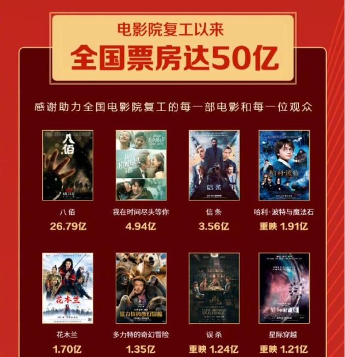 幾天前,電影行業(yè)還迎來了一個(gè)振奮人心的消息,據(jù)貓眼專業(yè)版數(shù)據(jù),截至9月14日19時(shí)29分,全國(guó)電影院復(fù)工以來(7月20日-9月14日)累計(jì)票房達(dá)到50億人民幣。其中《八佰》單片的貢獻(xiàn)超過了半壁江山。