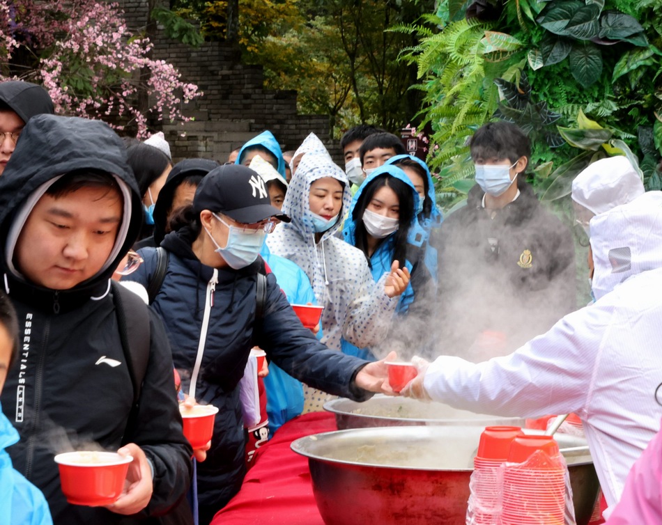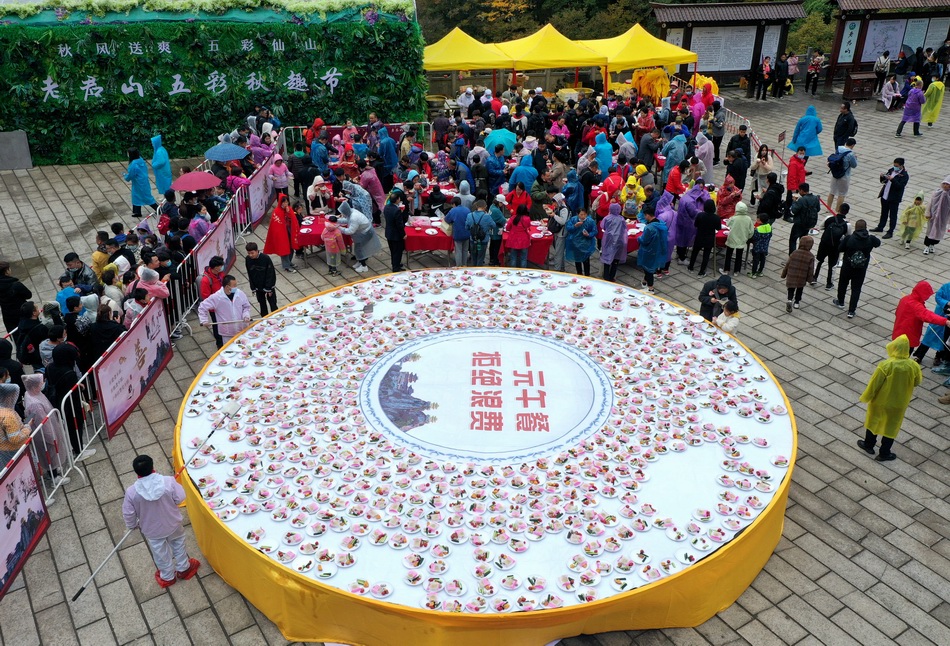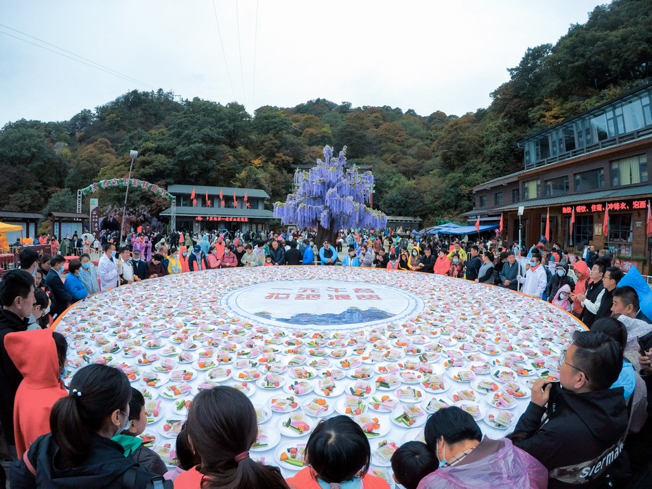 前述工作人員表示,在食物配置上,今年主食依然為當地特色的玉米糊涂面,并有黃瓜段、圣女果、鵪鶉蛋等配餐,因為今年國慶假期恰逢中秋,景區又特意贈送一塊月餅。食物設置了不同的份量,饅頭分大小饅頭、主食面條也有一份和半份之分,一份為750克,半份為500克,個人適量自取,避免浪費。
