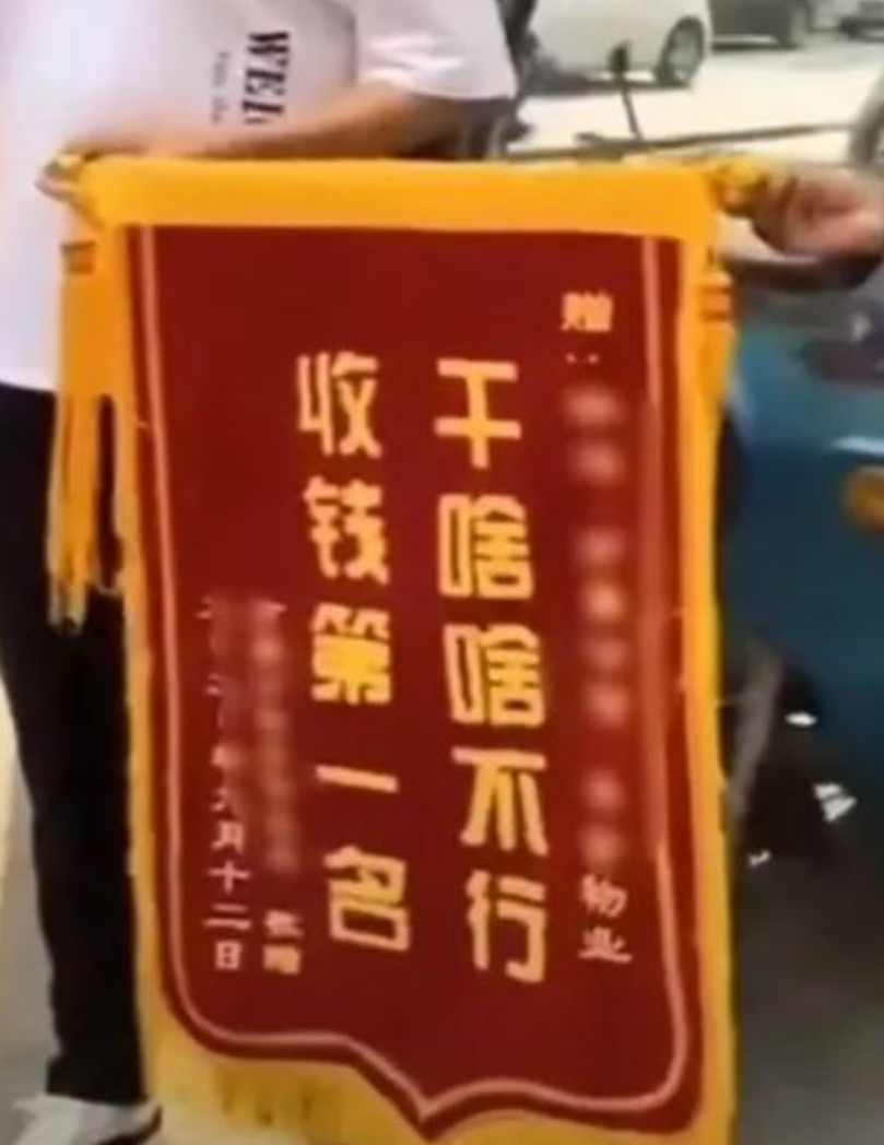 △業主給物業送“干啥啥不行,收錢第一名”錦旗