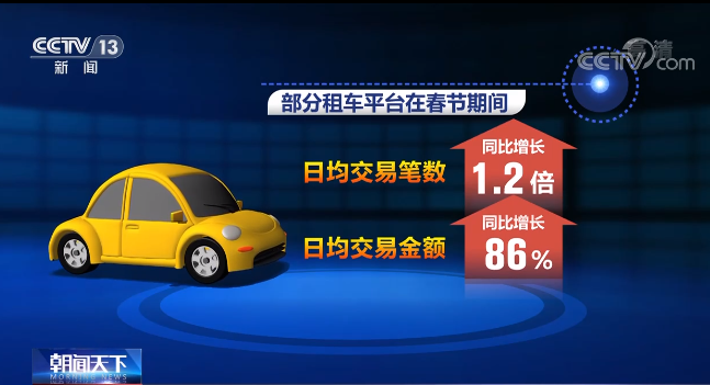 網聯平臺的數據顯示,春節假期,影視娛樂相關網絡支付日均交易筆數和交易金額相比去年春節假期分別增長了145倍和315倍。此外,春節期間本地游深受青睞,帶動租車市場表現活躍,部分租車平臺在春節期間日均交易筆數同比增長1.2倍、日均交易金額同比增長86%。