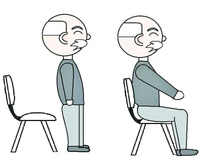 站在椅子前反復(fù)緩慢起立坐下,選擇帶有靠背和扶手的椅子,采用中坐姿勢,落座面積占椅面的2/3。