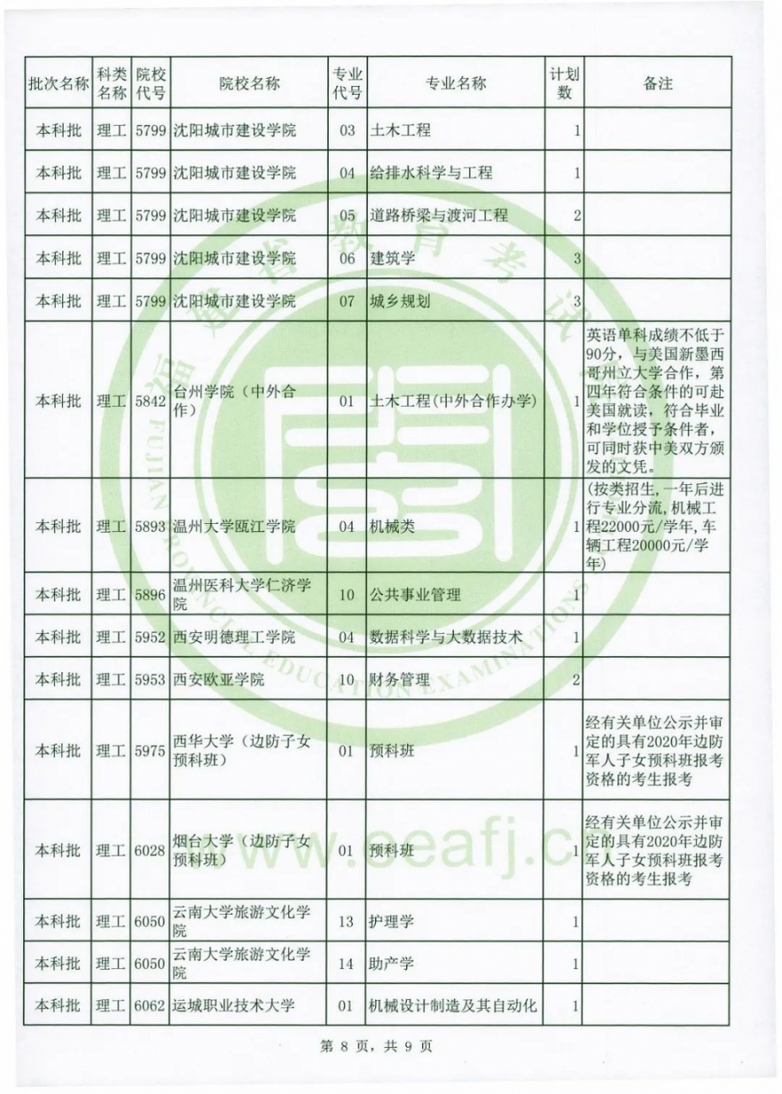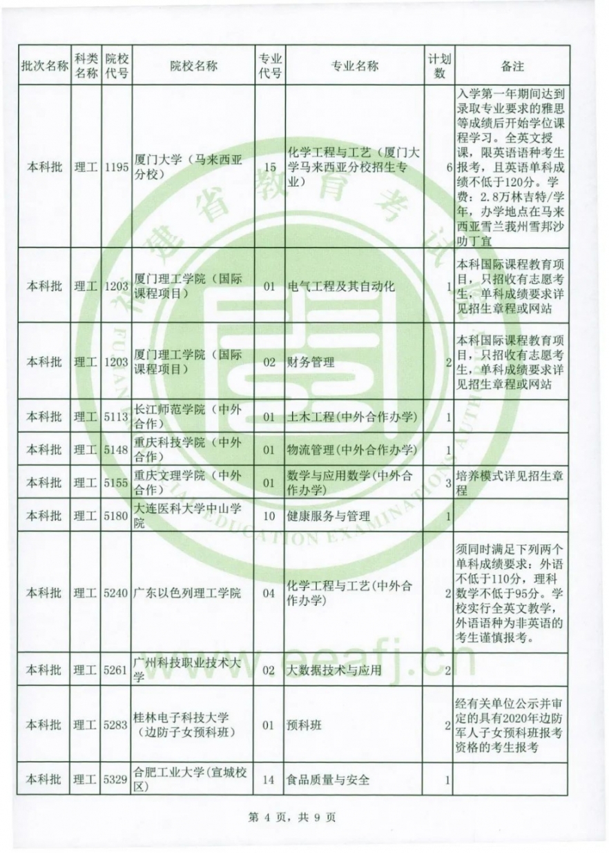 (3)有關(guān)高校的辦學地點、收費情況、報考條件等,請考生參閱《福建省2020年普通高校招生計劃》、有關(guān)政策規(guī)定和該高校的招生章程等。