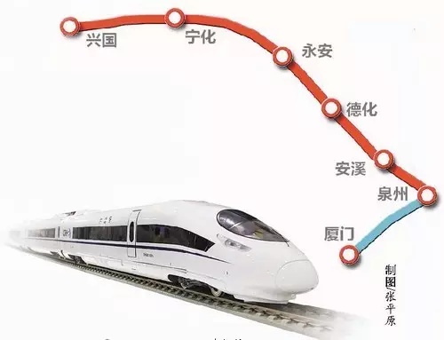 去年11月,《興泉鐵路廈門支線方案研究》專家組一致同意通過評審。廈門支線自興泉鐵路安溪東站引出,途經南安市英都鎮、廈門市同安區,最終引入廈門樞紐前場站。支線新建正線長度67.6千米,客車聯絡線2條,共17.63公里,全線設車站7座。興泉鐵路是東南沿海泉州港、廈門港通往內陸縱深的主要集疏運通道,同時為蒙華鐵路重要的出海大通道。