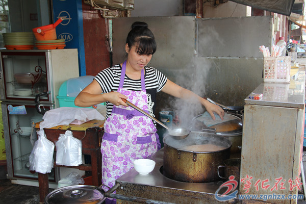 ??? 黃小花,34歲,寧化縣水茜鄉(xiāng)江家口人,曾外出打工多年,過著居無定所的漂泊生活,根本無暇顧及家中的老人和孩子。2013年4月,在寧化總工會和小吃辦的幫扶下,經(jīng)過多次實地考查,她毅然返鄉(xiāng)開店創(chuàng)業(yè),取名“小花客家小吃店”,以水煎包、勺子粉、松丸子、伴面、燒麥、兜湯為主,兼營小炒和盒飯,日營業(yè)額2000元以上。