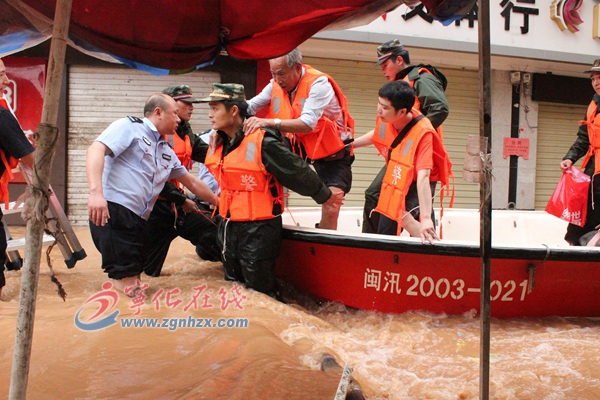 ??? “慢慢來,靠住船體。”此時驚魂未定的被困群眾已是手足無措,被洪水圍困得饑腸轆轆,由于著急,腳一滑摔入水中,徐所長見狀立即將其一把抓住,在武警與消防官兵的合力下將這名群眾頂上了沖鋒舟。