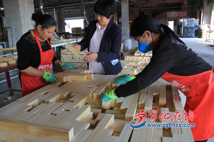 11月14日,位于寧化縣石壁鎮家具產業園的寧化縣明偉家具有限公司廠房內,工人們正在生產出口到東南亞的實木拼板等木制品。這里曾是一片荒廢閑置的廠房,2018年初,石壁鎮通過鄉賢招商和以商招商方式,從江西等地引進家具生產企業10家,盤活廠房8.6萬平方米,拉動工業總投資1.2億元。(本報寧化記者站 雷露微 攝)