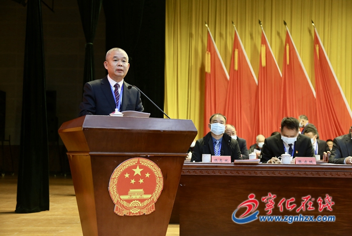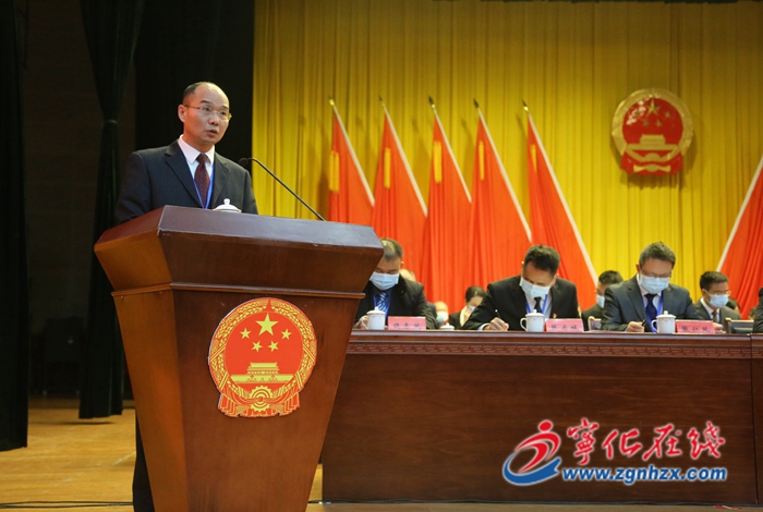 寧化縣委副書記、代縣長吳茂生作政府工作報告。報告分過去五年工作回顧、未來五年發展總體要求和目標任務、2022年主要工作三個部分。