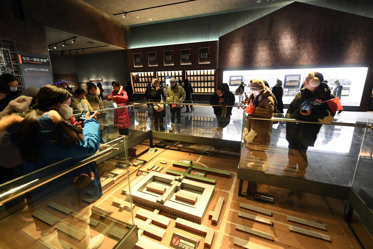 聯播+元月的哈爾濱,大地鶴雪,滴水成冰。嚴寒之中,大批游客在侵華日軍第七三一部隊罪證陳列館前排起了長隊。