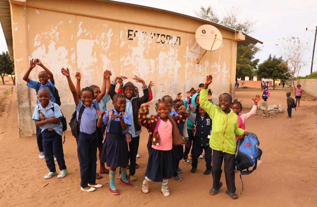 中國援非“萬村通”項(xiàng)目旨在為上萬個(gè)偏遠(yuǎn)村莊接入衛(wèi)星電視信號,助力非洲民眾聯(lián)通世界,是中非合作的重要舉措和共建“一帶一路”民心相通的重要成果。這是2023年7月25日,莫桑比克馬普托省皮科科村學(xué)校的孩子們站在裝有中國援助的衛(wèi)星電視接收天線的房屋前。新華社記者董江輝攝
