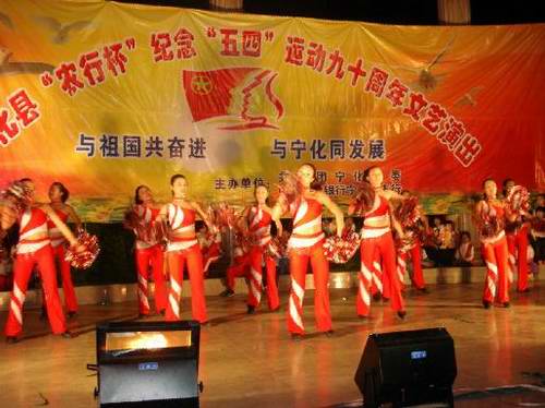 為紀(jì)念“五四”運(yùn)動九十周年,4月28日晚上,寧化團(tuán)縣委聯(lián)合縣農(nóng)業(yè)銀行在翠園廣場舉行了以“與中國共奮進(jìn)、與寧化同發(fā)展”為主題的紀(jì)念“五四”運(yùn)動90周年文藝演出。縣委常委、宣傳部長廖金輝、中國農(nóng)業(yè)銀行寧化縣支行行長余發(fā)然、團(tuán)縣委書記邱建蓉到場觀看;宣傳部、教育局、文體局、文聯(lián)等文化宣傳部門領(lǐng)導(dǎo)、演出單位領(lǐng)導(dǎo)及現(xiàn)場觀眾近2000余人觀看了演出。