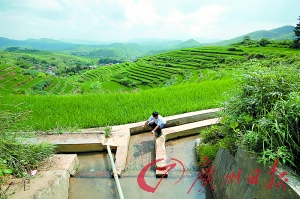 本報梅州訊 (記者葉仕欣 通訊員黃志忠、丘佳納、黃玉情攝影報道)初秋時節,鑲嵌在大埔縣大東鎮坪山村連綿起伏群山中的千畝梯田綠浪涌動,盡管當地久晴少雨旱情迫人,但生長在山腰間千畝梯田里的禾苗依舊郁郁蔥蔥生機盎然,這全得益于被當地水利專家稱為客家“都江堰”的灌溉系統。
