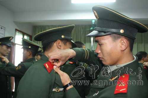 ??? 在莊嚴的《中國人民解放軍軍歌》中,三明市武警支隊干部宣讀了退伍命令。老兵們眼含熱淚,你幫我,我幫你,輕輕取下徽章,雙手緊緊攥著,舍不得松開。新戰士為十六名退役士兵戴上了“光榮退伍”的大紅花。昔日朝夕相處的戰友個個熱淚盈眶,大家紛紛相擁握別,有的抑制不住感情,抱頭大哭……