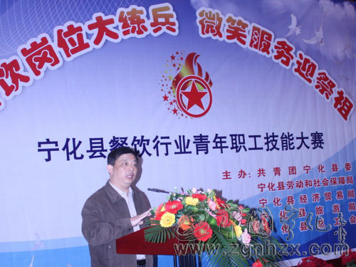 ???? 11月25日,由共青團寧化縣委、寧化縣勞動和社會保障局、寧化縣經貿局、寧化縣旅游局、寧化縣總工會五部門聯合舉辦的“餐飲崗位大練兵 微笑服務迎祭祖”首屆餐飲行業青年職工技能大賽在閩贛商務大酒店三樓隆重開幕。