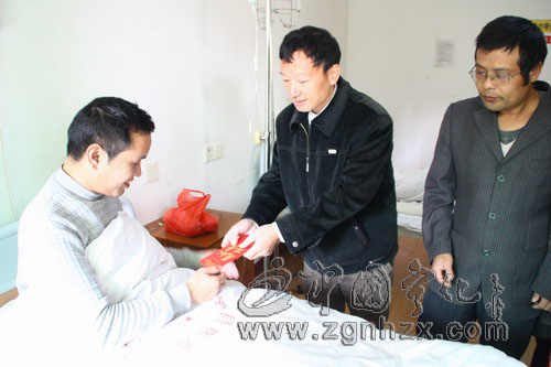 1127 20位現在或曾在寧化縣河龍中心學校工作的老師相約來到寧化縣醫院感染科病房,探望患病的同行羅國華,并送上紅包表達自己的心意。“羅國華明天將轉院到福州去治療,我們來看看他,希望他能盡早痊愈。”河龍中心學校初中部的周老師對記者說。