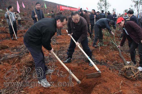 ??? 在植樹(shù)現(xiàn)場(chǎng),陳忠杰、巫福生等縣領(lǐng)導(dǎo)拿起鐵锨、鋤頭等工具,興致勃勃地鏟土植樹(shù)。每種一棵,他們都把樹(shù)坑填平,將圍堰培實(shí)……每一道工序,大家都做得一絲不茍。陳忠杰一邊植樹(shù),一邊同大家親切交談。在縣領(lǐng)導(dǎo)的帶領(lǐng)下,參加義務(wù)植樹(shù)的廣大干部職工群熱情高漲,個(gè)個(gè)干得熱火朝天。大家揮鍬培土,山坡上呈現(xiàn)一派生機(jī)勃勃的景象。從早上七點(diǎn)至下午,大家共種植香樟、陽(yáng)光山礬、光皮樹(shù)等等樹(shù)木4萬(wàn)余株,植樹(shù)面積達(dá)300多畝。