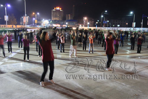 在紅土地廣場,一到晚上7點,成群青年婦女便踏著鼓點跳起健身舞。3、5個青年婦女站在臺上領舞,一曲終了,還會作些示范和說明。在這里長年堅持領舞示范的一位女士說,她們自費買了VCD,專門排練了時尚舞蹈,花樣翻新,引得一些中老年婦女也紛紛加入其中。每天都到場跳健身舞的邱女士說:“自從廣場上有了健身舞,每天都有一、二百人到這里來,許多從鄉下到城里來做事的農民也過上了城里人的夜生活!”有了文化活動,廣場的小夜市也隨之興起。“在家里看電視不如看真人表演來得過癮。每晚上還能收入個二三十塊錢,關鍵是圖個樂子!”在翠園廣場賣燒烤的吳老漢開心地說。