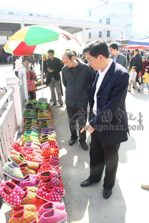 鄧本元代市長關(guān)注治平群眾手工織的毛鞋