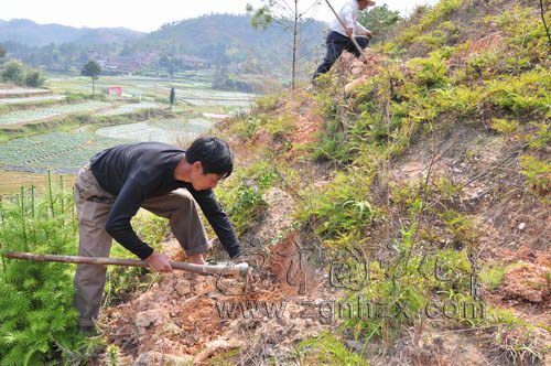 ??? 眼下正是新植油茶的大好時節(jié),連日來,在寧化縣淮土鄉(xiāng)水東村五里井200多畝山場,10多名工人在林業(yè)技術(shù)人員的指導(dǎo)下,采用蓄水保土的“魚鱗坑”整地方式,種下一棵棵良種油茶嫁接苗。“至4月5日,全縣新植油茶面積達(dá)1.02萬畝。” 縣林業(yè)局營林股負(fù)責(zé)人告訴筆者。