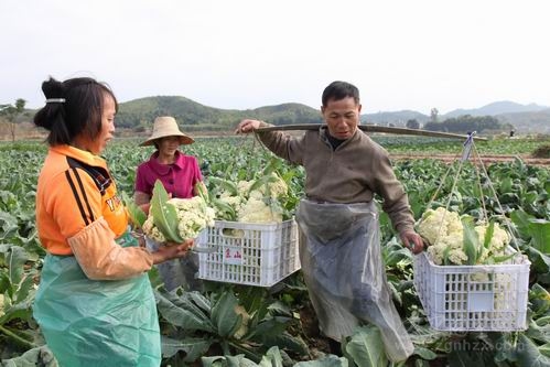 ??? 12月3日,寧化縣金山農業開發有限公司的城南基地,到處都是忙著采摘瓜菜的菜農。簡易機耕道上,工人們將剛剛采摘的白花菜裝車運往廈門。“我們在寧化的近千畝蔬菜已經開始批量上市,連日降雨終于放晴了,20多噸的白花菜今晚就要運達廈門。”負責生產的經理鄒文瑞告訴筆者。