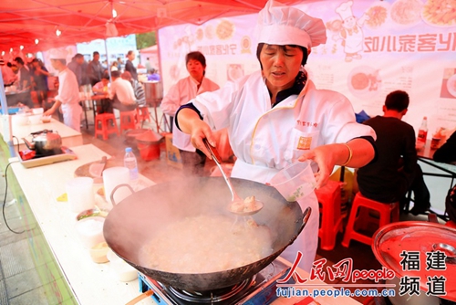 ??? “松丸子”是寧化的特色小吃,用豆腐、香菇丁、荸薺丁等制成。在當地有吃了松丸子,一整年輕輕松松的說法 鄒家驊攝