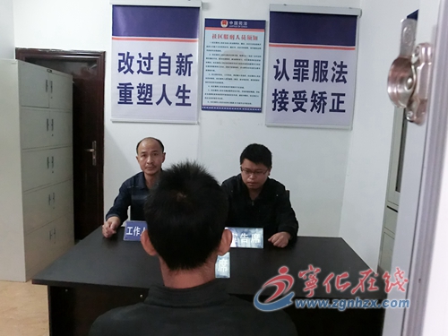 3月31日上午,矯正對(duì)象邱某一大早到寧化縣中沙司法所報(bào)到入矯。司法助理員、司法協(xié)理員帶領(lǐng)邱某來到社區(qū)矯正室,對(duì)他們進(jìn)行入矯宣告儀式。