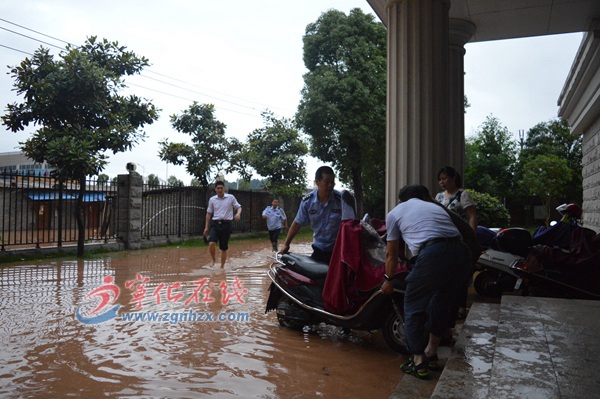 ??? 19日上午8時30分,寧化法院緊急成立防洪搶險領導小組及時啟動預案。俞和勇院長親自安排部署防洪搶險工作,要求各部門、庭室認真做好法院內部防洪搶工作,同時積極響應縣委、政府號召服務全縣抗洪搶險大局,保障人民群眾的生命和財產安全。全院干警全部到崗到位,全力備戰抗洪搶險工作。下午18時,水位迅速上漲,導致全院停電,嚴重威脅法院立案庭、車庫、值班室等地勢較低地帶。干警們緊急轉移重要設備及卷宗材料,盡可能減少損失,并由陳健黨組帶領10余名干警組成應急小分隊留守值班,時刻關注洪水情況。晚上,10點左右水勢有所緩和,至11點30分左右洪水退出法院,直到這個時候留守干警才放心的在燭光的照耀下草草的吃了兩口飯。不過,為確保安全,提防洪水再次來襲,干警們繼續留守至天亮。