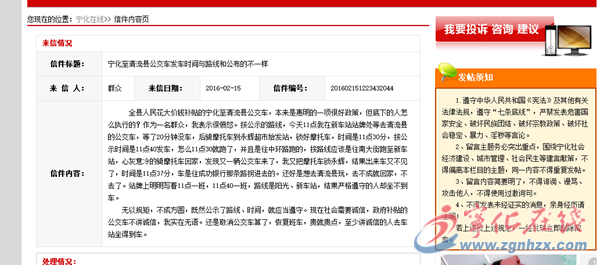 ??? 近日,有網友在寧化在線民意直通車上反映,寧化至清流的縣際公交車發車時間和線路與之前公布的不一樣,致使他當日沒有成功乘坐公交車。