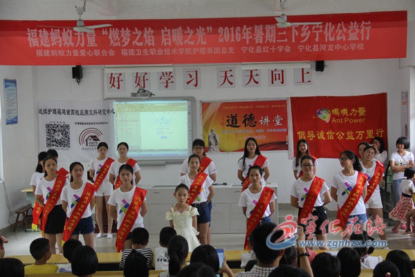 ? ? 近日,寧化縣河龍中心學(xué)校校園里熱鬧非凡,80多名孩子們載歌載舞、剪紙朗誦,好不開心。原來是福建螞蟻力量公益聯(lián)合福建衛(wèi)生職業(yè)技術(shù)學(xué)院護(hù)理系在這里開展“燃夢之焰,啟暖之光”2016年暑期三下鄉(xiāng)支教活動(dòng)。