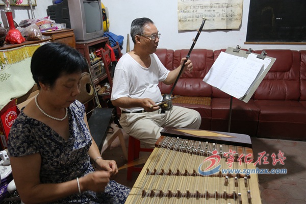? ? 鄭新民是一名退休干部,1992年加入中國共產黨,從小愛好敲鼓和拉二胡,至今已有30個年頭。劉喜珠今年66歲,是供銷系統的一名退休干部,也是一名老黨員,從小愛好舞蹈和彈揚琴。共同的音樂愛好,讓兩人最終走到了一起。當年還在縣建筑公司上班時,鄭新民就積極組建“星期三樂隊”,現更名為“寧化客家業余曲藝團”,成員也從16名發展到26名,他自任曲藝團團長。2008年退休后,鄭新民夫婦有了充足的時間組織曲藝團活動,演出活動由原來單一的唱小曲、唱山歌發展到打擊樂演奏、器樂合奏、民間藝術表演。夫婦倆積極配合縣里的中心工作,多次應邀參加一年一度的客家祭祖和文化館舉辦的“周六大家唱”等系列活動,唱響紅歌頌黨恩。