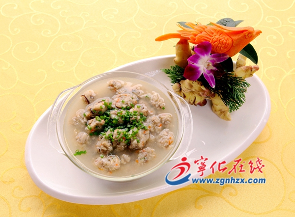 ? ? 元宵節,寧化有一種特色美食,那就是松脆香軟的松丸子。其制作簡單,先把瘦豬肉、筍(最好是冬筍)、香菇、荸薺、蔥或蒜等配料洗凈切碎,一起放入油鍋中加入精鹽等調料炒至半熟,用盆盛起,便成了松丸的餡料,然后放入打爛的豆腐里,再加上少許地瓜粉,用手拌勻成糊狀,攪拌時要軟硬適中,恰到好處。
