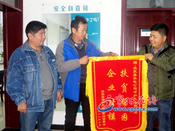 呼和托哈鄉(xiāng)種畜場(chǎng)的牧民送來(lái)錦旗